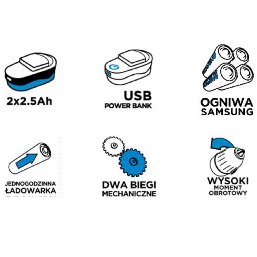 - funkcja ładowania urządzeń zewnętrznych przez złącze USB znajdujące się na akumulatorze